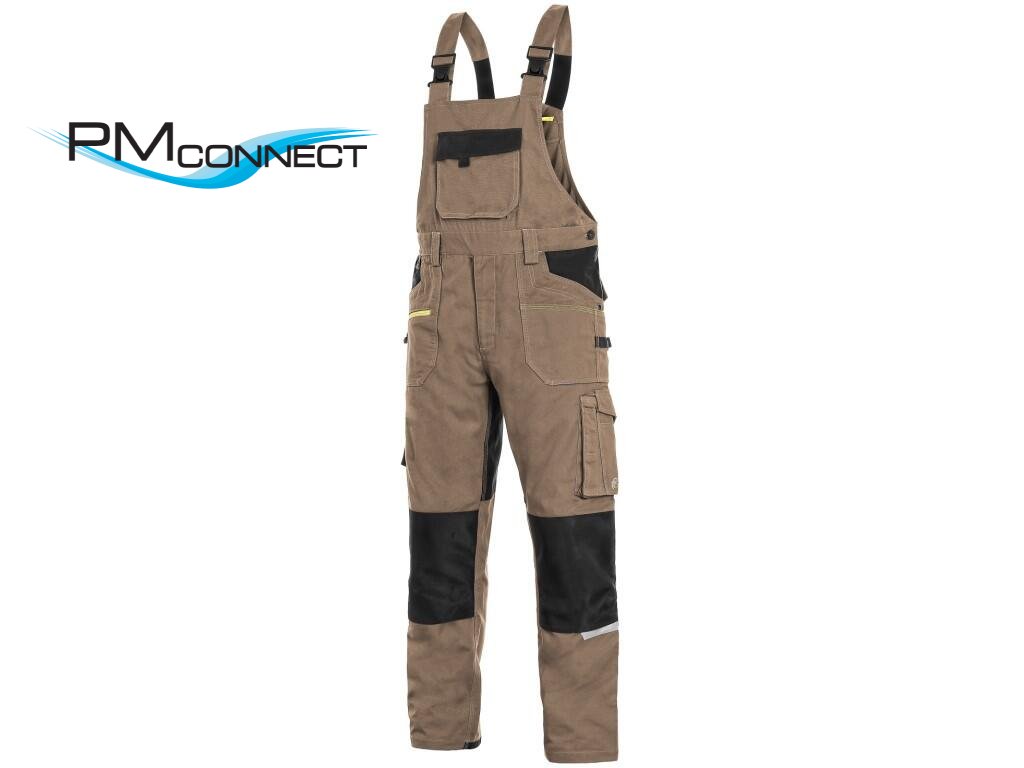 Pánské montérkové kalhoty s náprsenkou, strečová tkanina umožňující volný pohyb, náprsní kapsa s klopou, pas s poutky na opasek, přední kapsy s kapsou na zip, multifunkční kapsy na obou stranách, kolena zesílena 600D polyesterem s možností vložení kolenních výztuh, dvě zadní kapsy - jedna s klopou, zadní spodní lem nohavice vyztužen 600D polyesterem, šle s gumou vzadu, reflexní doplňky. Doporučené použití: strojírenství, stavebnictví, lehký průmysl, automobilový průmysl, logistika, skladová manipulace, spedice, autoservisy, údržba, montáže, zemědělství, zahrada, hobby. Kalhoty jsou vybaveny EASY-PROLONG systémem, který umožňuje snadné prodloužení střihu na vyšší postavu uvolněním švu na nohavicích.