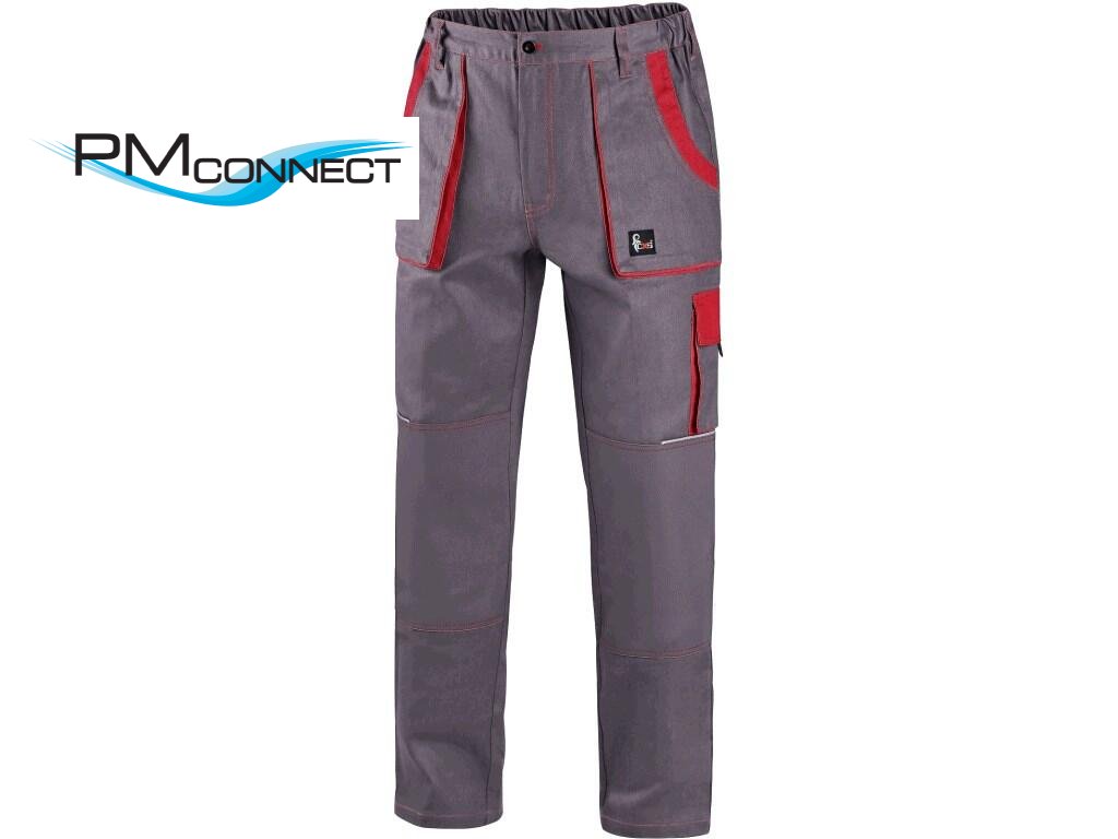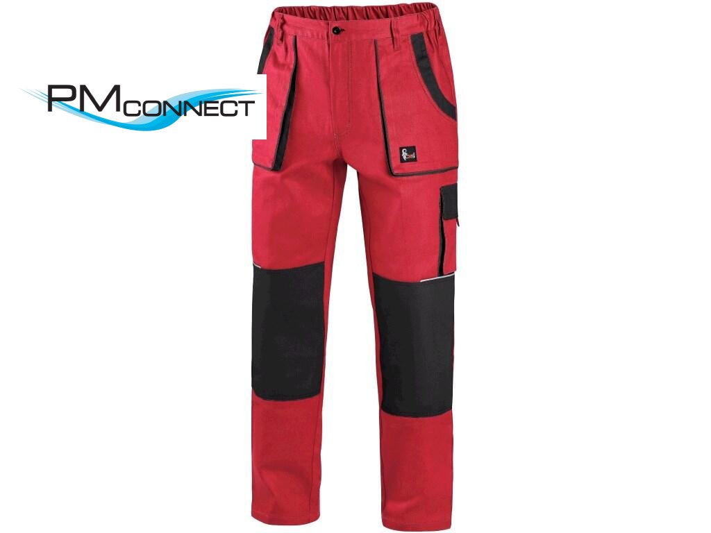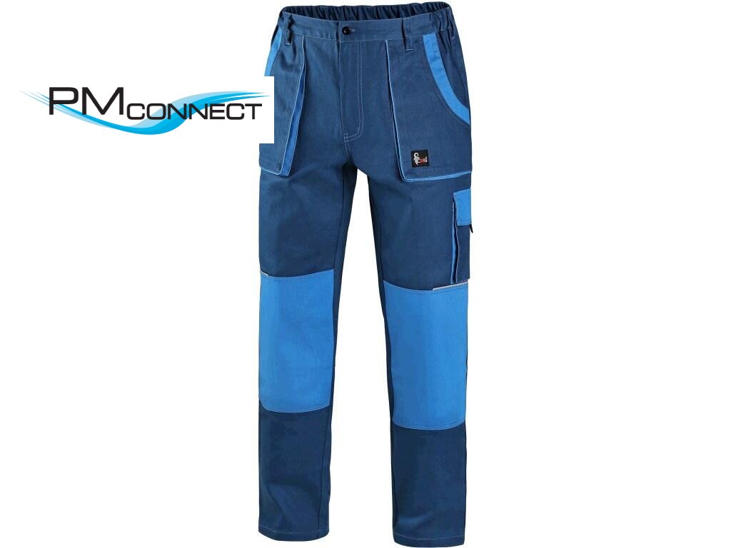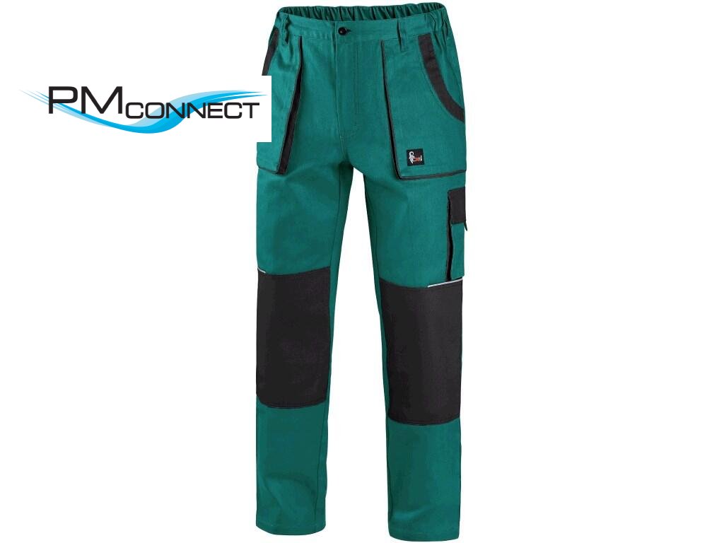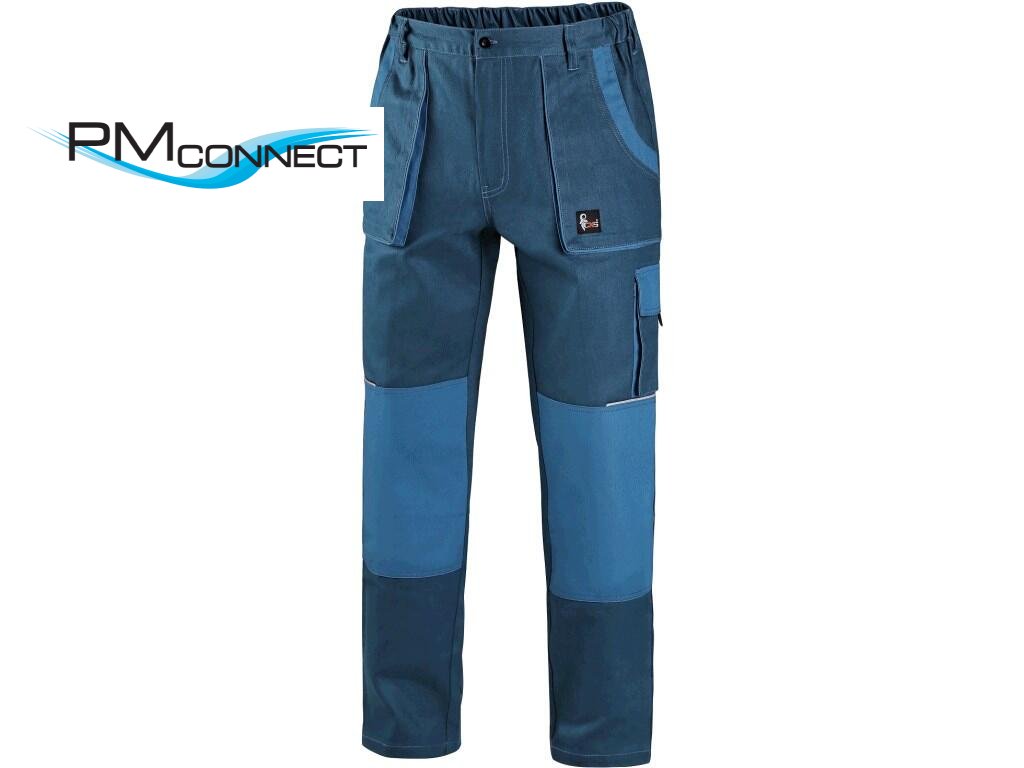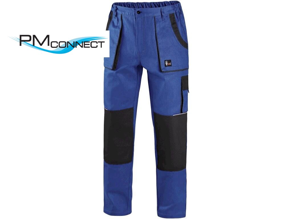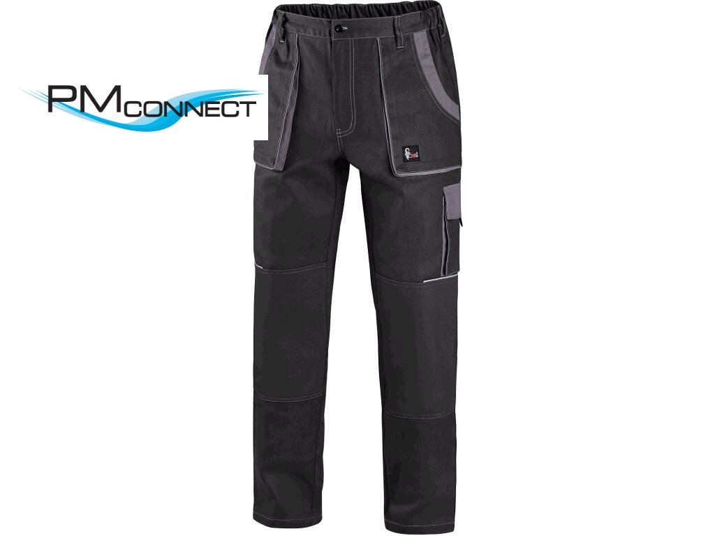Pánské montérkové kalhoty, pas s poutky na opasek, vzadu do gumy, přední kapsy, boční kapsa na svinovací / skládací metr, boční kapsa na mobil / peněženku, zdvojená kolena, zadní kapsa s klopou, reflexní doplňky. Doporučené použití: stavebnictví, lehký průmysl, logistika, skladová manipulace, autoservisy, údržba, montáže, zemědělství, zahrada, hobby.Doplňkové parametry