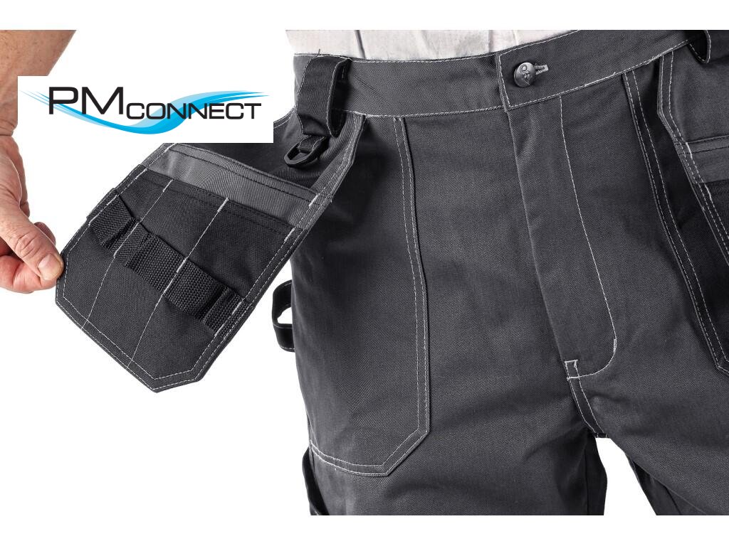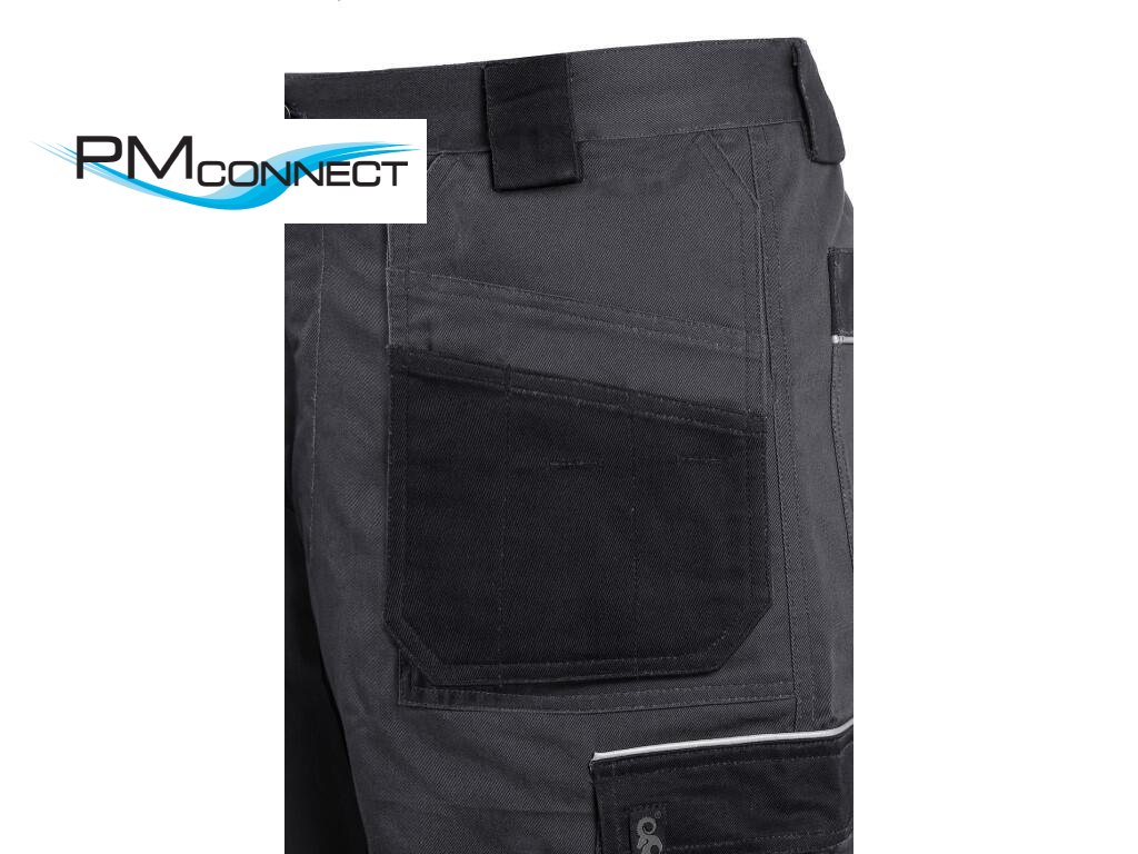 Pánské montérkové kalhoty, pas s poutky na opasek, vzadu do gumy, přední volně visící kapsy na nářadí s možností vložení do kapes, multifunkční kapsy na obou stranách, kolena zesílena 600D polyesterem s možností vložení kolenních výztuh, dvě zadní kapsy, jedna na suchý zip, reflexní doplňky. Doporučené použití: stavebnictví, strojírenství, lehký průmysl, automobilový průmysl, logistika, skladová manipulace, spedice, autoservisy, údržba, montáže, zemědělství, zahrada, hobby.Doplňkové parametry