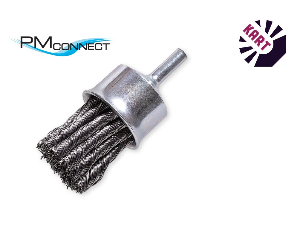 Koncový kartáč o průměru 28 mm, osazený ocelovým drátem o průměru 0,25 mm, stočený do copánků.