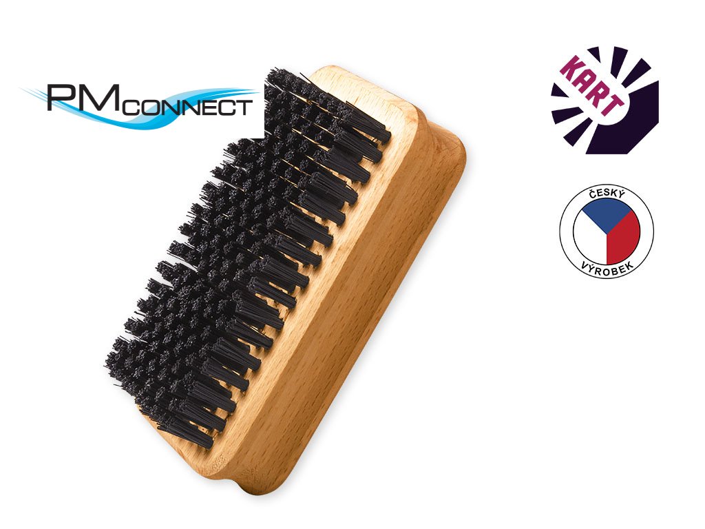 Ruční kartáč pro očištění a jemné leštění skluznic lyží, snowboardů nebo běžek, osazen polyamidovým (nylonovým) vláknem o průměru 0,20 mm.