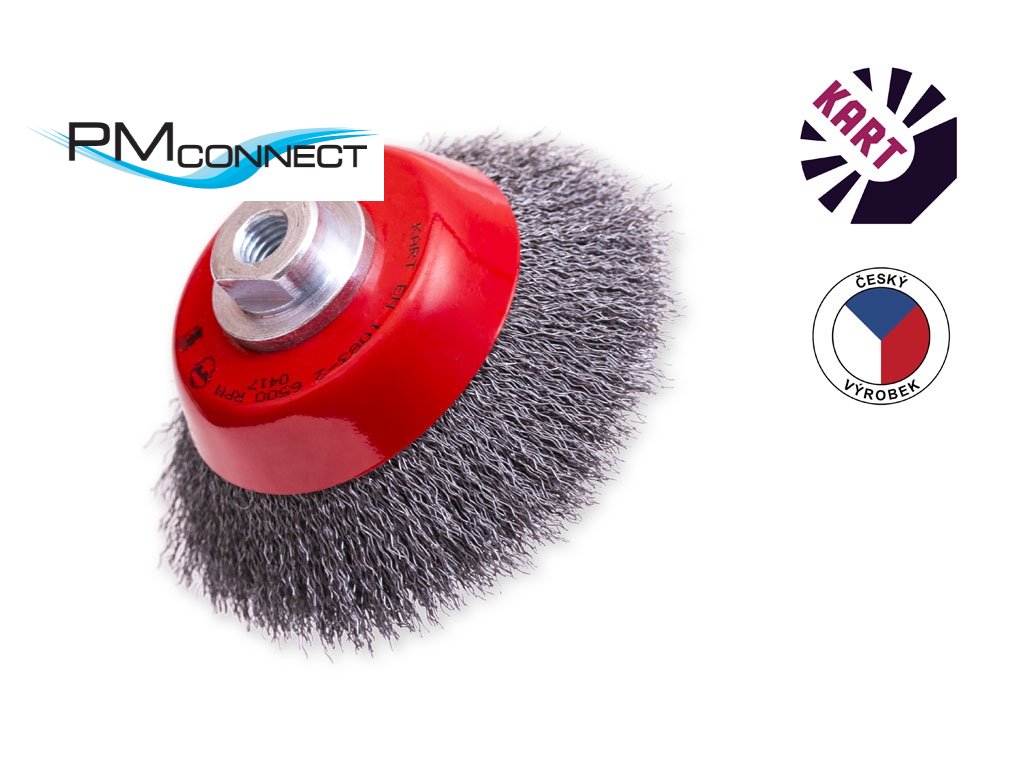 Hrnkový kartáč o průměru 120 mm, osazený vlnitým ocelovým drátem o průměru 0,45 mm.