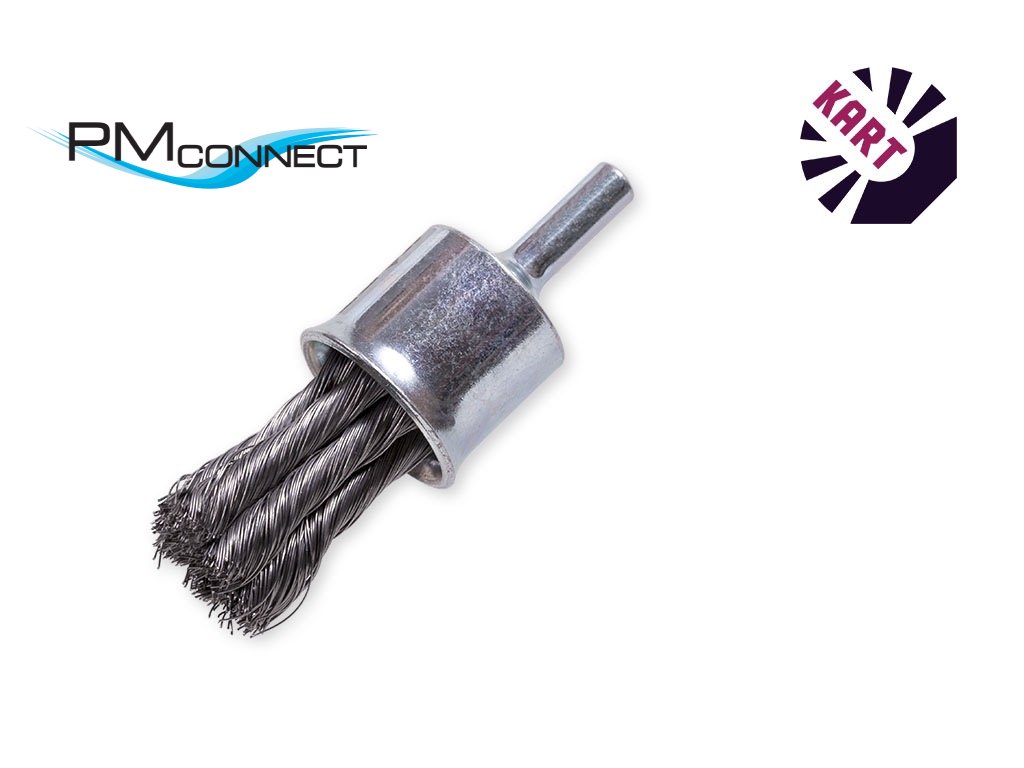 Koncový kartáč o průměru 22 mm, osazený ocelovým drátem o průměru 0,25 mm, stočený do copánků.