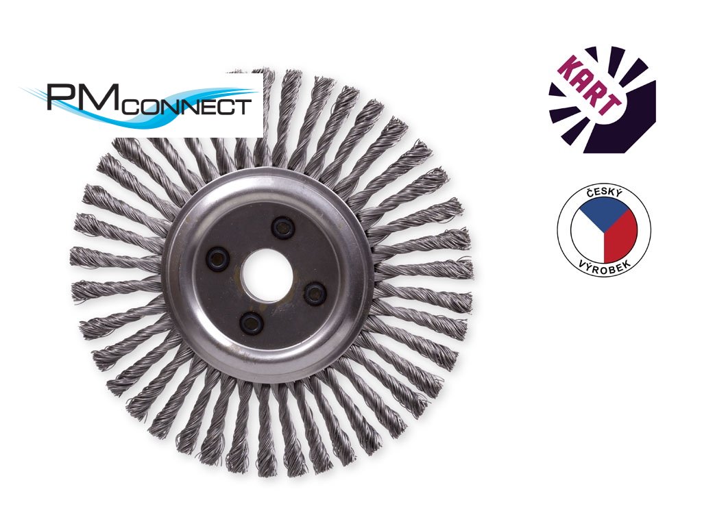 Radiální copánkový kartáč o průměru 171 mm, osazený ocelovým drátem o průměru 0,40 mm, s upínacím otvorem o průměru 22,2 mm.