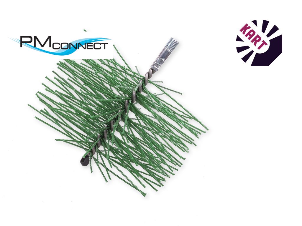 Rourový kartáč o průměru 130 mm, závitem M12 je osazen polypropylenovým vláknem o průměru 1,5 x 1,8 mm.