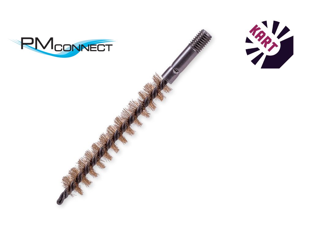 Rourový kartáč o průměru 16 mm, závitem M10 je osazen vlnitým mosazným drátem o průměru 0,15 mm.