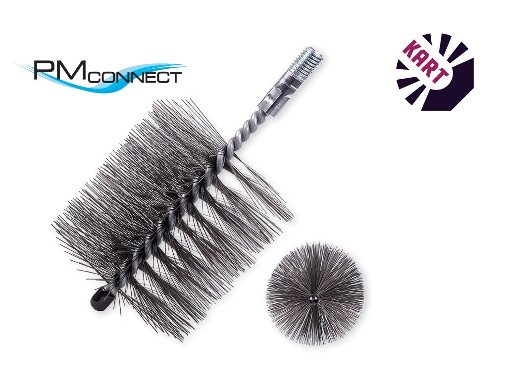 Rourový kartáč o průměru 95 mm, závitem M12 je osazen hladkým ocelovým drátem o průměru 0,40 mm.