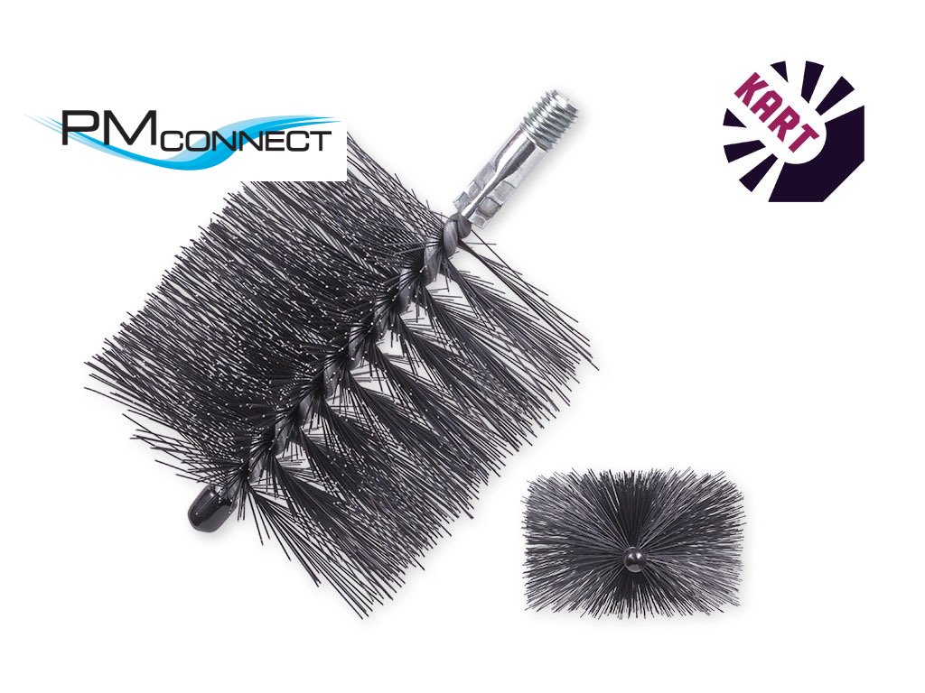 Hranatý rourový kartáč o délce stran 60 mm x 100 mm, závitem M12 je osazen hladkým ocelovým drátem o průměru 0,40 mm.
