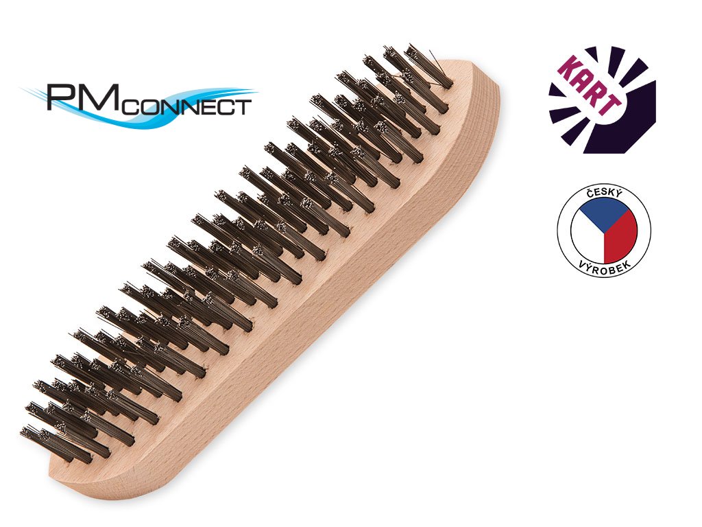 Univerzální ruční dřevěný kartáč, tzv. "lodička", osazený hladkým ocelovým drátem o průměru 0,30 mm.
