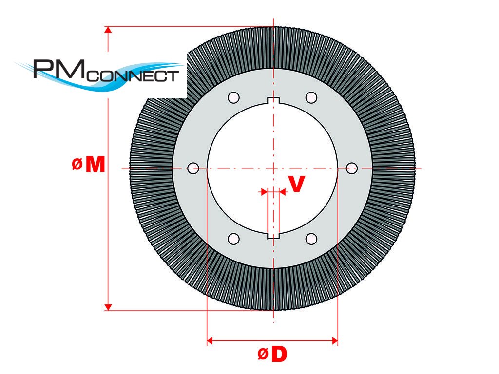 Velký copánový kartáč ø 250 mm, osazený hladkým nerezovým drátem o průměru 0,40 mm.
