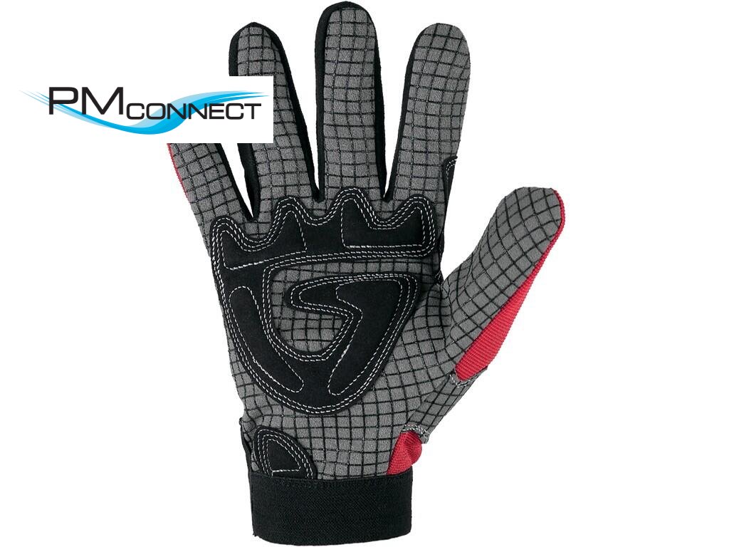 Kombinované rukavice se silikonovým potiskem v dlani a části prstů pro lepší úchop manipulaci. Ve svrchní části strečový elastan a neoprén v oblasti kloubů, dlaň z viskozy (syntetické kůže). Rukavice jsou pohodlné a odolné vůči srážení, natahování a tvrdnutí. Nastavitelné zapínání na zápěstí s páskem na suchý zip, pěnové vycpávky v dlani snižující otřesy, nárazy a vibrace. Baleny s blistrem. Doporučené aplikace: logistika, lehký průmysl, hobby, řidiči.Doplňkové parametry