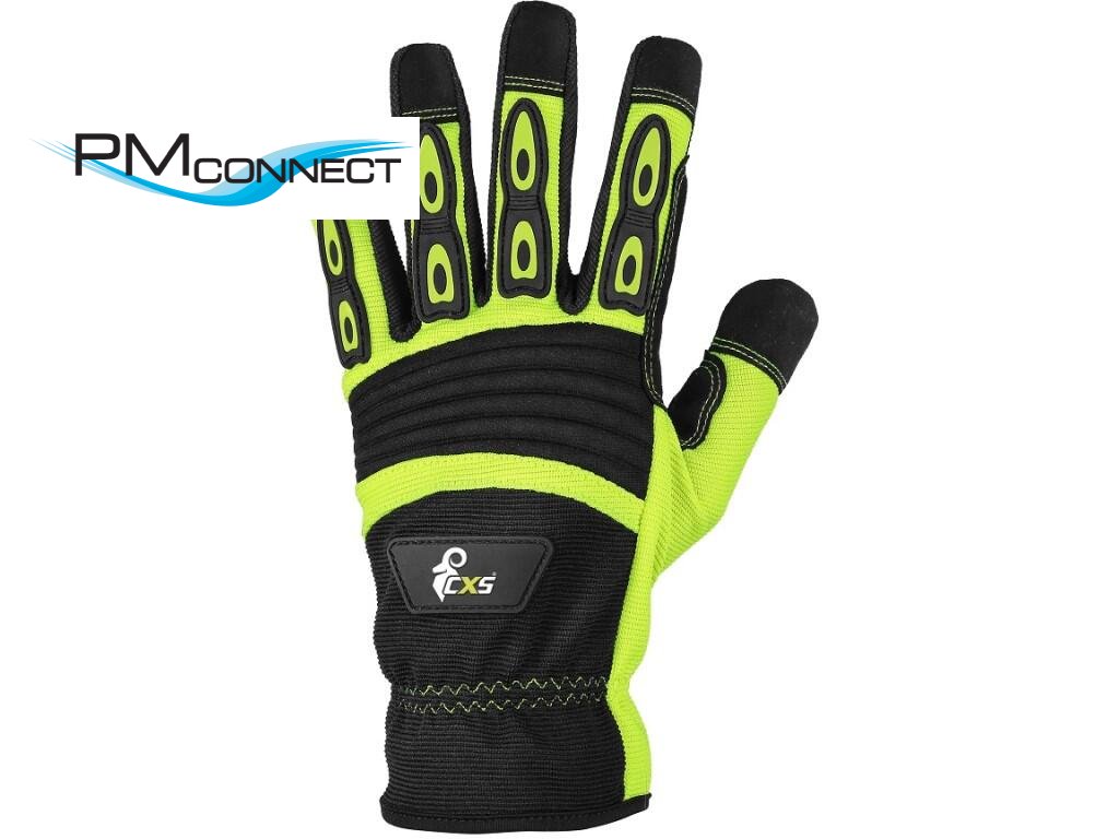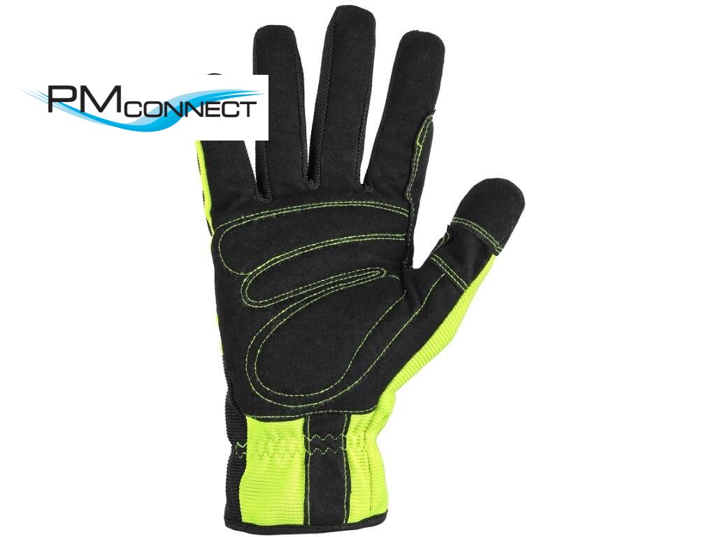 Rukavice kombinované s TPR aplikacemi na hřbetu pro ochranu prstů. Dlaň je vyrobena ze syntetické kůže (mikrovlákna), díky které jsou rukavice pohodlné a odolné vůči srážení, natahování a tvrdnutí. Pěnové výstelky v dlani pomáhají redukovat otřesy. Hřbet z prodyšného Spandexu, v oblasti kloubů neopren, gumička v zápěstí. Baleny s blistrem. Doporučené použití: logistika, lehký průmysl, hobby, řidiči.Doplňkové parametry