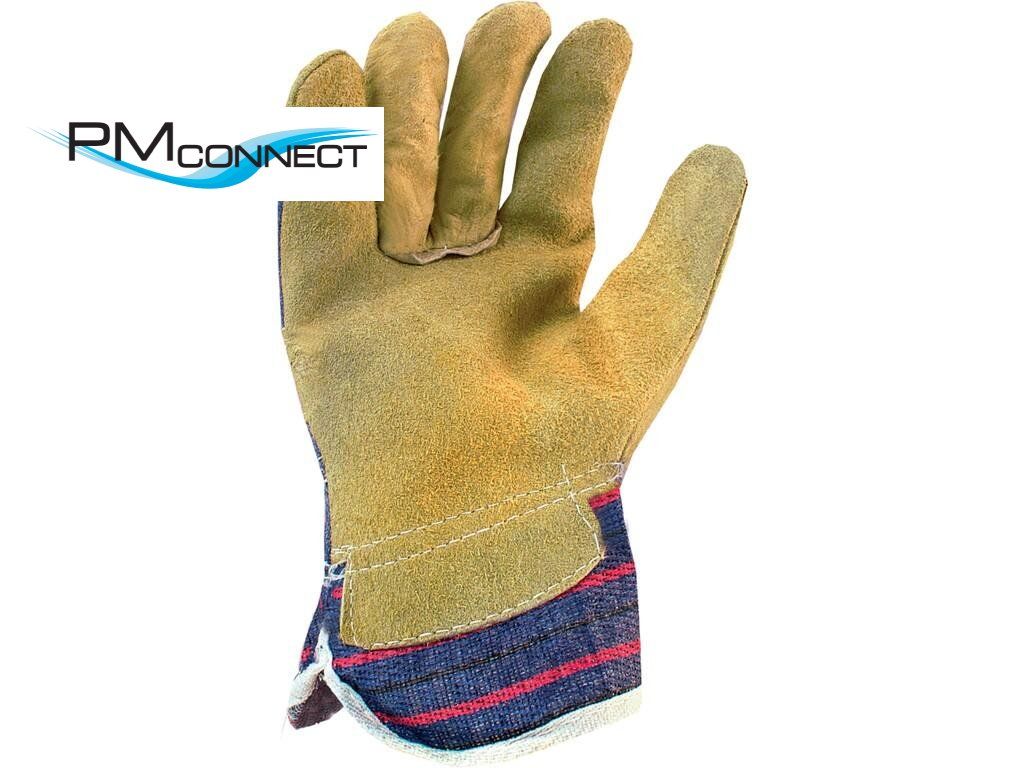 | Materiálové složení: | dlaň - hovězí štípenka, hřbet a manžeta - bavlněná tkanina |