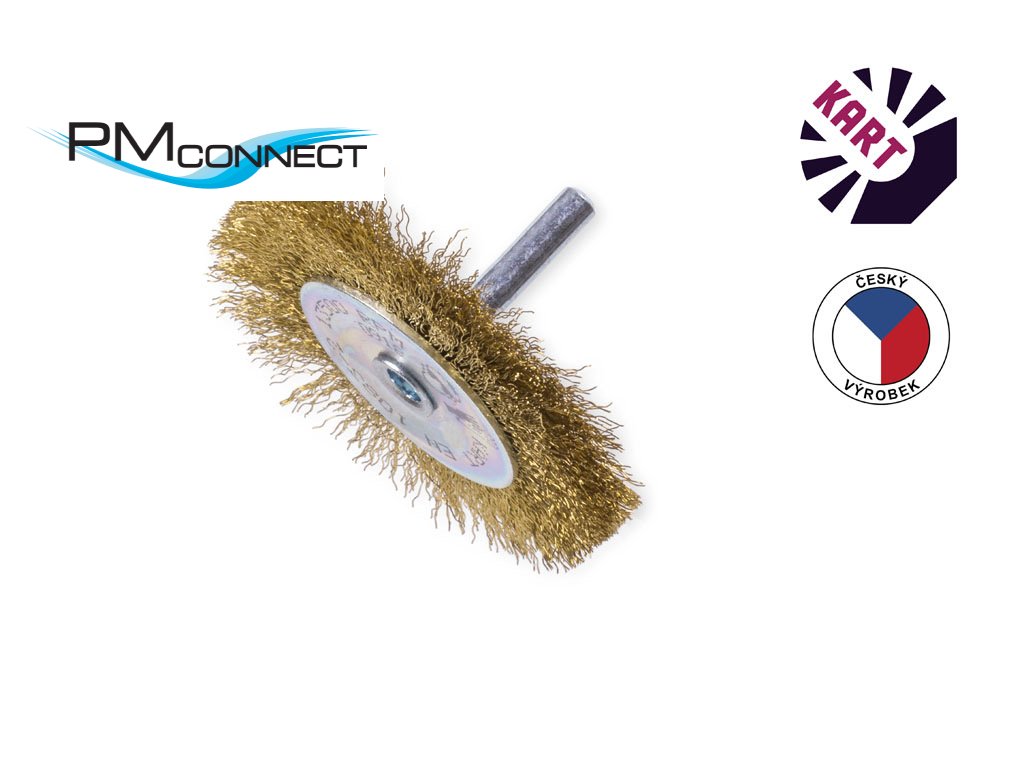Jednořadý kotoučový kartáč o průměru 70 mm a stopkou o průměru 6 mm, osazený vlnitým mosazným drátem o průměru 0,20 mm.