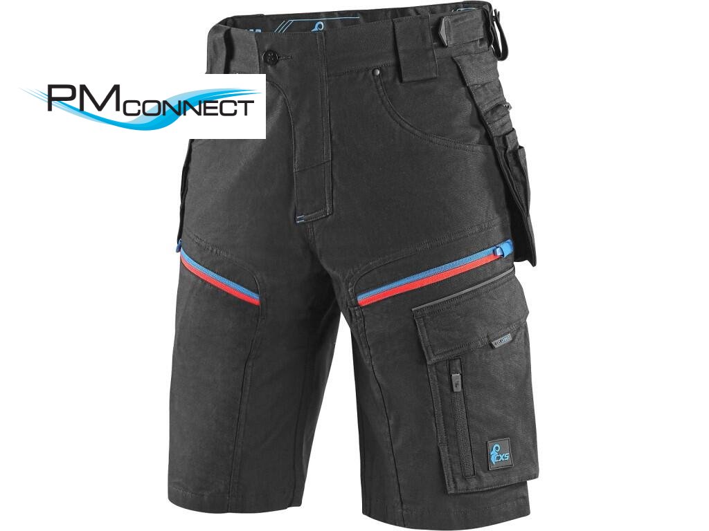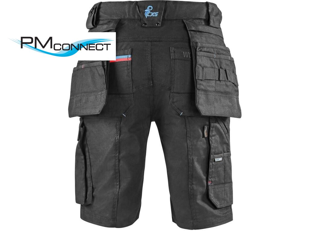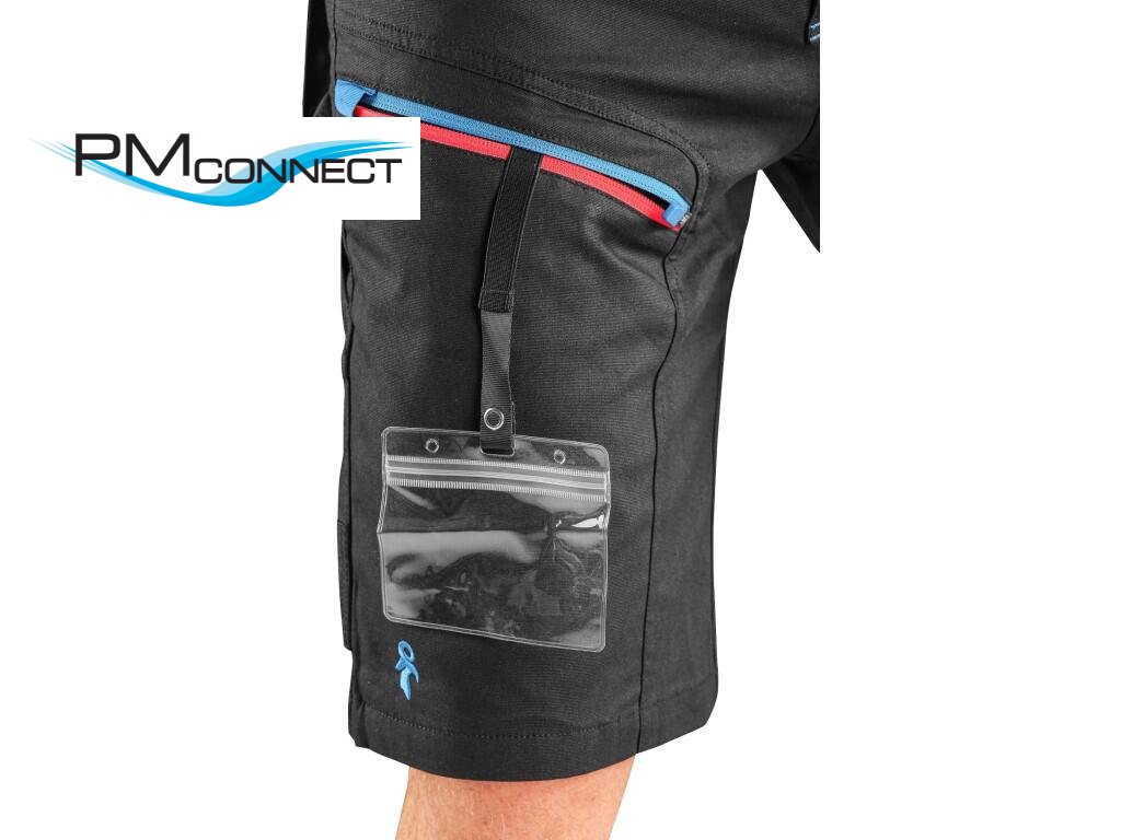 Pánské pracovní kraťasy s kontrastními barevnými doplňky. Kombinace kvalitního směsového materiálu s elastanem a 4-way stretch materiálu v exponovaných místech umožňuje volný a pohodlný pohyb. Vybavení: flexibilní pas s možností upravení velikosti a poutky na opasek, protiskluzový potisk na vnitřní straně pasu, 2 přední kapsy, 2 odnímatelné kapsy na nářadí vyztuženy materiálem CORDURA®, stehenní zipové kapsy s možností ventilace a kapsou na ID kartu, boční kapsa se zipovou kapsou, 2 zadní kapsy (jedna zipová) vyztuženy materiálem CORDURA®, kapsa na skládací metr s dalšími přihrádkami, reflexní doplňky. Doporučené použití: letní pracovní oděv, strojírenství, stavebnictví, lehký průmysl, automobilový průmysl, logistika, skladování, spedice, autoservisy, údržba, montáže, zemědělství, zahrada, hobby a volný čas.