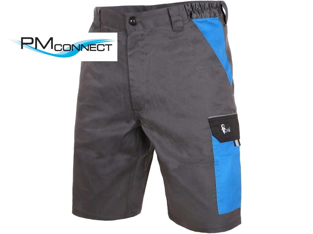 Pánské montérkové kraťasy z lehkého materiálu, pas s poutky na opasek a gumou v bocích, přední klínové kapsy, boční kapsa s klopou, kapsa na skládací/svinovací metr, zadní jednoduchá kapsa na pravé straně, reflexní doplňky. Doporučené použití: letní pracovní oděv, stavebnictví, strojírenství, lehký průmysl, automobilový průmysl, logistika, skladová manipulace, spedice, autoservisy, údržba, montáže, zemědělství, učiliště, zahrada, hobby.Doplňkové parametry