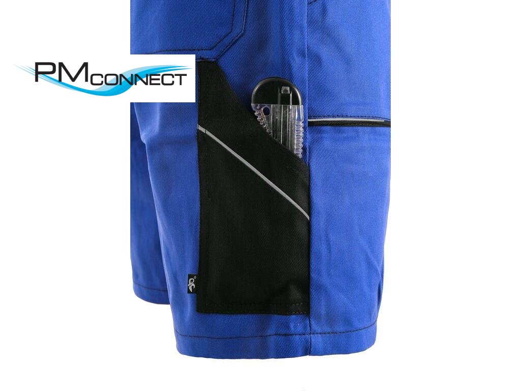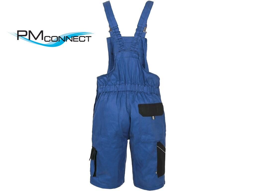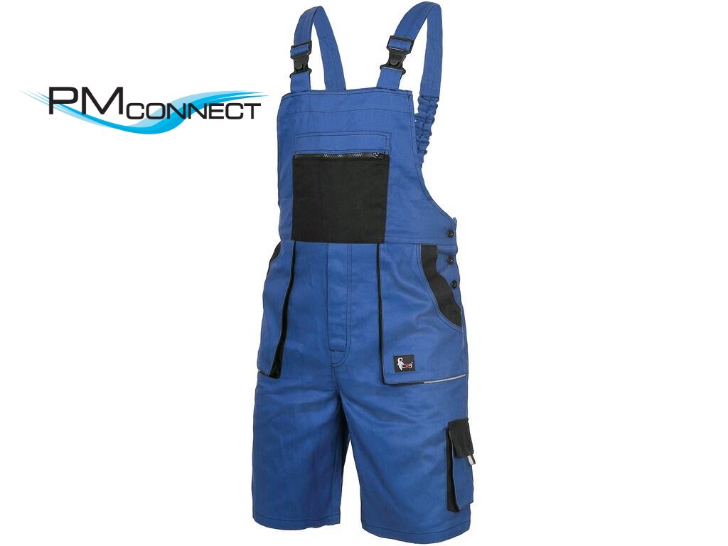 Pánské montérkové kraťasy s náprsenkou, náprsní kapsa na zip, pas na knoflíky, vzadu do gumy, přední kapsy, boční kapsa na svinovací / skládací metr, boční kapsa na mobil / peněženku, zadní kapsa s klopou, šle s gumou vzadu, reflexní doplňky. Doporučené použití: letní pracovní oděv, stavebnictví, lehký průmysl, logistika, skladová manipulace, autoservisy, údržba, montáže, zemědělství, zahrada, hobby.Doplňkové parametry