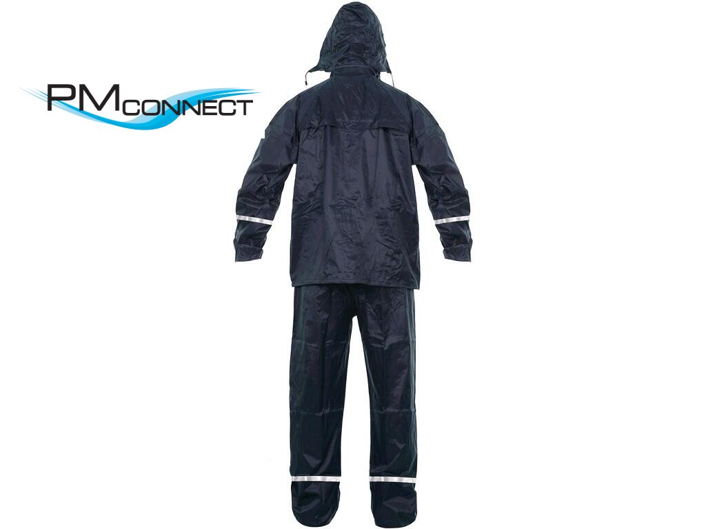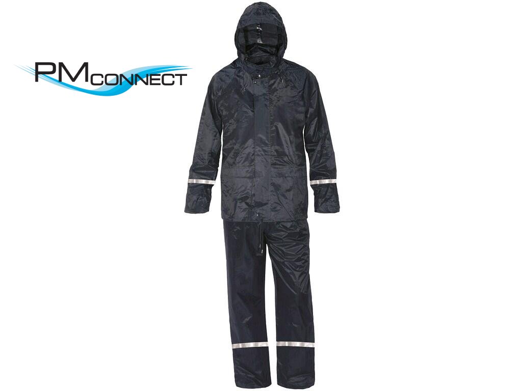 Nepromokavý oděv do deště s kapucí v límci, nižší hmotnost. Zapínání na zip, stahování v dolním okraji, větrání na zádech a v podpaží, kalhoty v pase do gumy, lepené švy. Praktické balení na zip. Reflexní doplňky u modré a zelené varianty.Doplňkové parametry