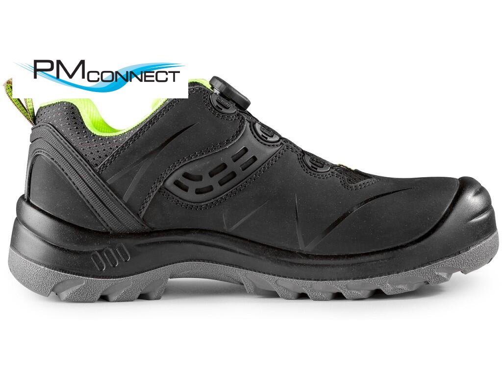 >Bezpečnostní kožená polobotka s plastovou špicí a planžetou Dyna-Flex®, reflexní doplňky. Speciální utahovací systém umožňuje rychlé stažení i uvolnění obuvi. Materiál: svršek z 1,6 - 1,8 mm štípenkové nubukové kůže (z jednoho dílu), vnější PU ochrana okopu a TPU ochrana paty, podšívka z prodyšné oděru odolné textilie, podešev: PU-PU, olejivzdorná, antistatická, protiskluzová a odolná proti propichu.Doplňkové parametry