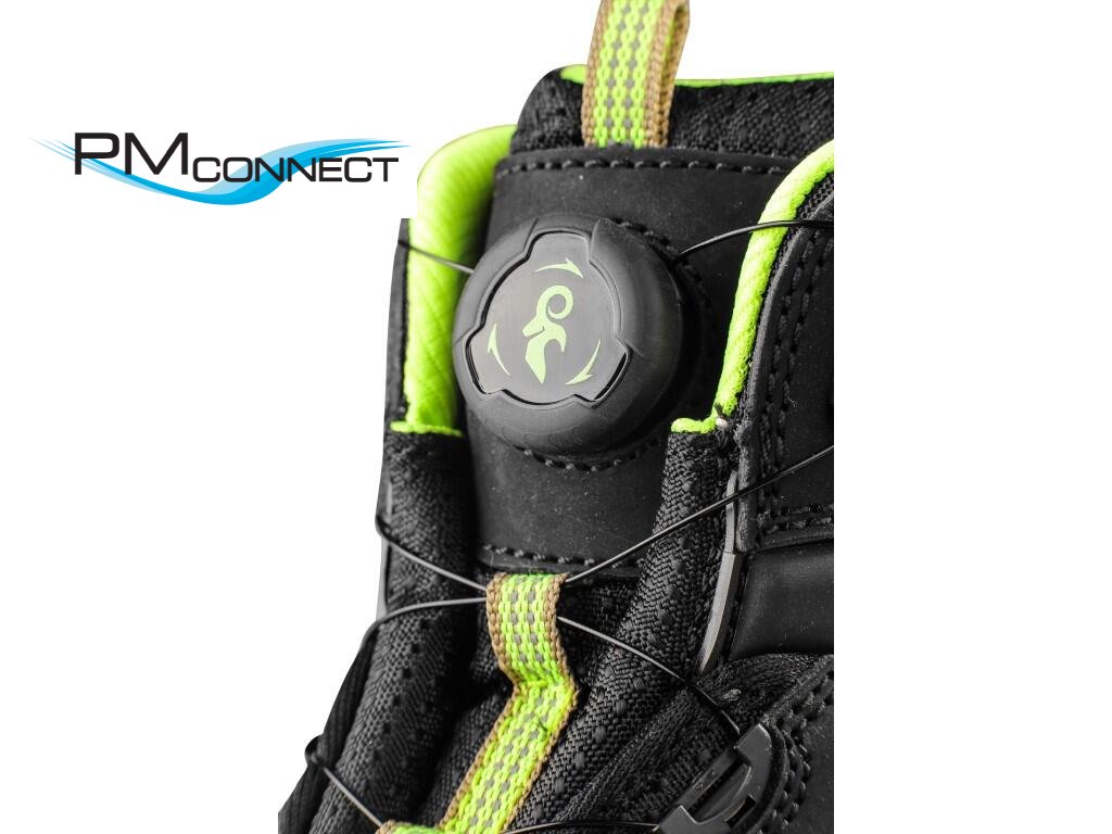 >Bezpečnostní kotníková obuv, kožená s plastovou špicí a planžetou Dyna-Flex®, reflexní doplňky. Speciální utahovací systém umožňuje rychlé stažení i uvolnění obuvi. Materiál: svršek z 1,6 - 1,8 mm štípenkové nubukové kůže (z jednoho dílu), vnější PU ochrana okopu a TPU ochrana paty, podšívka z prodyšné oděru odolné textilie, podešev: PU-PU, olejivzdorná, antistatická, protiskluzová a odolná proti propichu.Doplňkové parametry