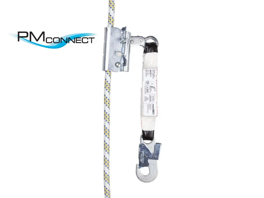 Řízený zachycovač pádu, používá se na flexibilním ukotveném laně pro zachycení pádu. Je určen pro polyamidové lano AC 100 o průměru 14 mm. Základní vybavení: