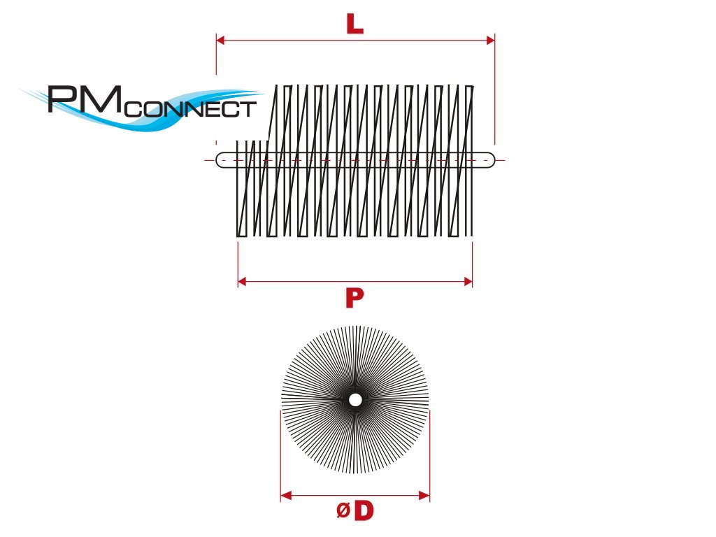 Ochranný okapový kartáč, neboli ježek do okapů, v délce 600 mm (720 mm vč. drátu) o průměru 150 mm je osazen polyamidovým vláknem o průměru 0,50 mm.