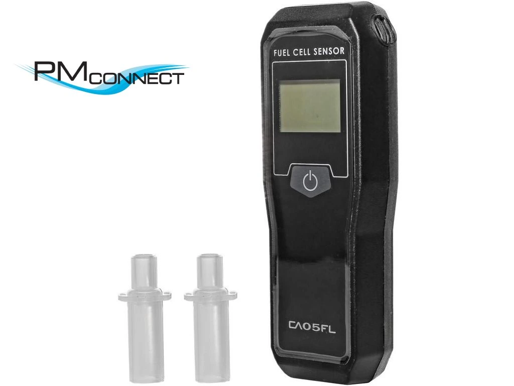 Digitální alkohol tester typu CA05FL. Detekuje v rozsahu 0,00-4,00 ‰, zvukový indikátor měření. Technologie palivových článků, LCD displej s barevným podsvícením.Doplňkové parametry