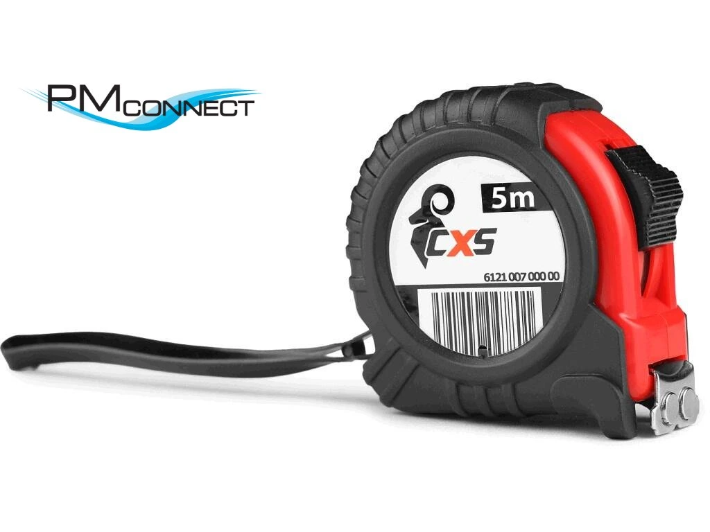 Kovový svinovací metr v plastovém pouzdře, s magnetem na přední straně háčku. Kovová zarážka a gumové poutko pro zavěšení. Délka 5 m.
