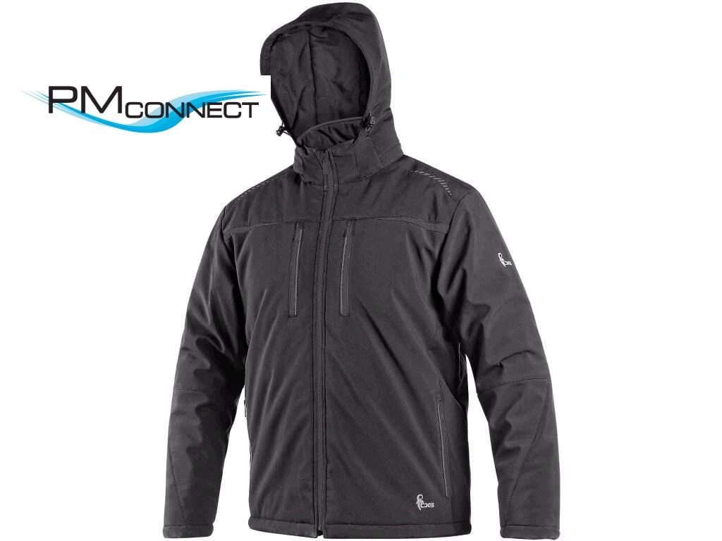 Pánská zateplená softshellová bunda s odepínací kapucí, odolná proti vodě a větru, zapínaní na zip, větrání v podpaží, náprsní kapsy na zip, v pravé kapse odnímatelné pouzdro na ID kartu, boční kapsy na zip, vnitřní kapsy, vnitřní manžety v rukávech, stahování v dolním okraji, reflexní doplňky, TPU membrána, vnitřní otvor na zip pro aplikaci výšivky. Odolnost materiálu proti průniku vody 8 000 mm mimo oblast švů, paropropustnost 3 000 g/m2/24h.Doplňkové parametry