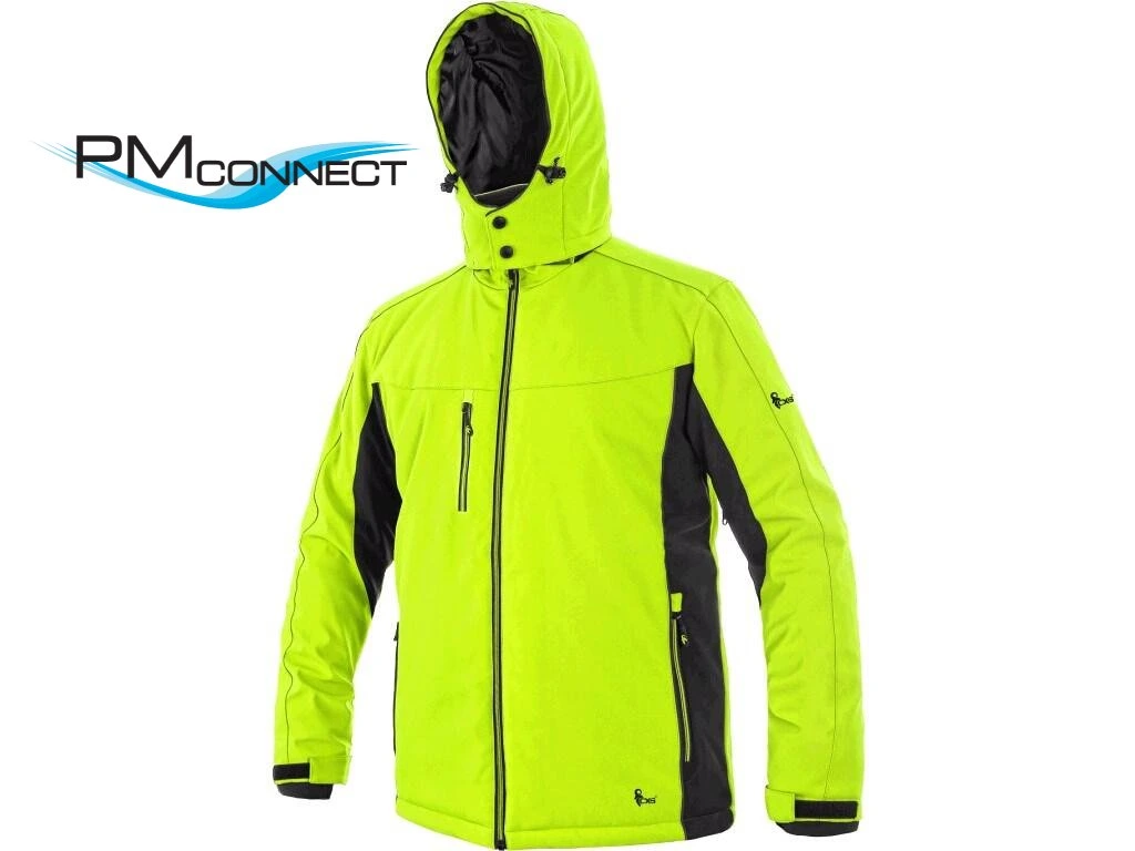 Pánská zateplená softshellová bunda, odolná proti vodě a větru, větrání v podpaží, odepínací kapuce, regulovatelná manžeta na rukávech a pružná manžeta v rukávech, stahování v dolním okraji, černé reflexní výpustky, TPU membrána, odolnost materiálu proti průniku vody 10 000 mm mimo oblast švů, paropropustnost 3 000 g/m2/24 h, podšívka je kombinací materiálů s fleecem, na levém spodním rukávu kapsička na zip, 2 spodní kapsy na zip, vnitřní kapsa.Doplňkové parametry