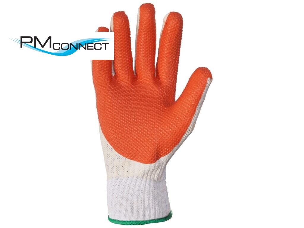 Bezešvé pletené rukavice ze silné směsové příze, impregnované latexem se silnou vrstvou latexu v dlani a na prstech. Doporučené aplikace: logistika, skladování, stavebnictví, zahrada, hobby, komunální služby, práce v lehce vlhkém prostředí.Doplňkové parametry