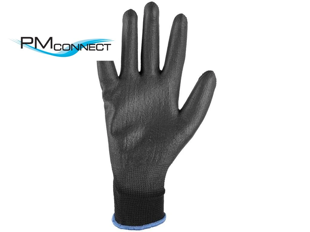 Pletené bezešvé rukavice, dlaně a prsty povrstveny polyuretanem, pružná manžeta. Doporučené aplikace: automobilový průmysl, elektronika, logistika, skladování, lehké montáže.Doplňkové parametry