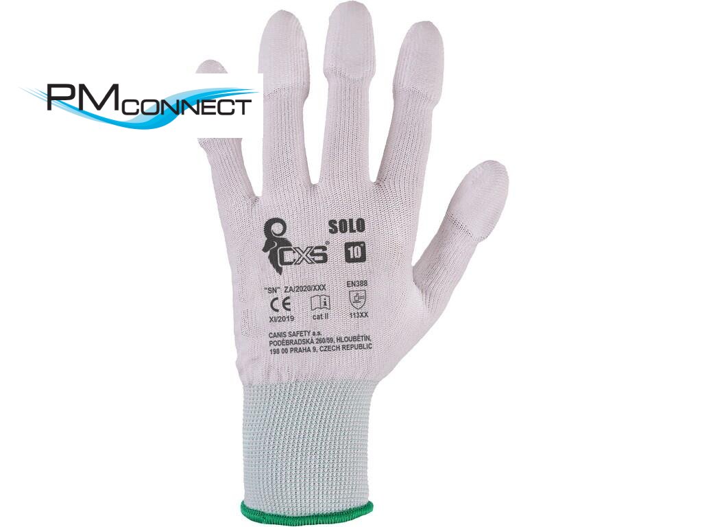 Pletené bezešvé rukavice s pružným nápletem a tenkou vrstvou polyuretanu na konečcích prstů. Doporučené aplikace: automobilový průmysl, elektronika, logistika, skladování, zahrada, úkony lehké montáže.Doplňkové parametry