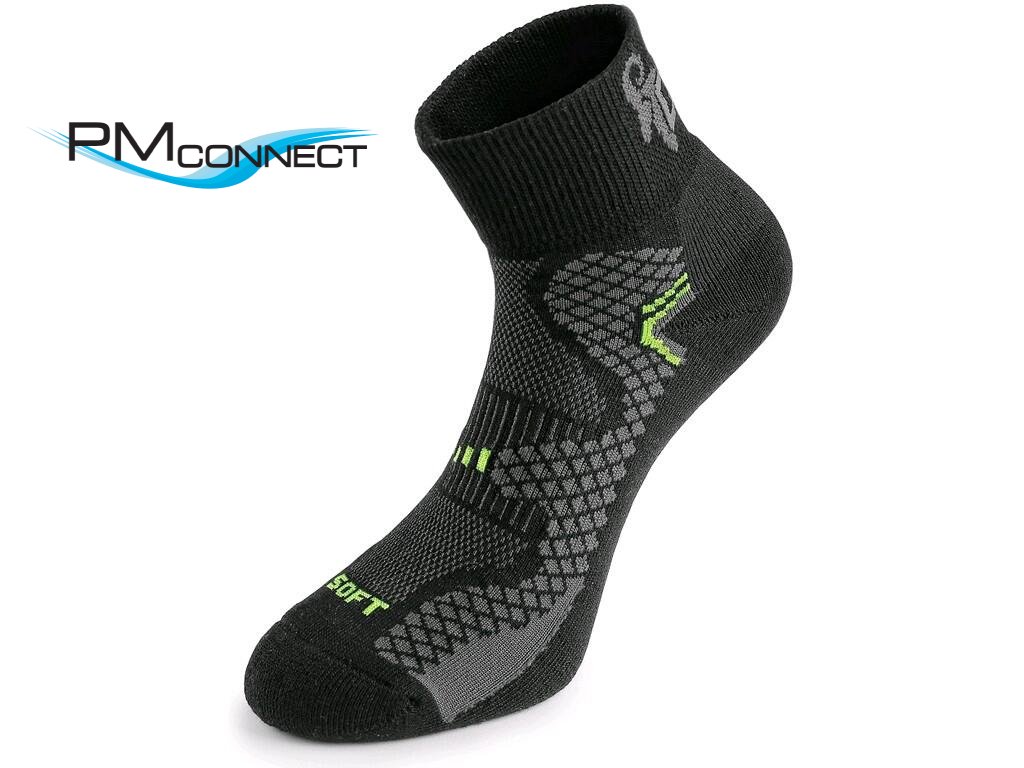 Elastické funkční ponožky určené pro profesní, sportovní a volnočasové aktivity, se sníženým lemem, odvádí vlhkost od chodidla, zmírňují pocit chladu. Chodidlo ponožek je tvořeno z froté (plyšového) multivrstvého úpletu složeného z funkční kombinace polypropylenu a bavlny a zabezpečí měkký došlap a vyšší komfort ve vlhkém a chladném prostředí. Nártový elastický pásek je určený proti posunu ponožek na chodidle.Doplňkové parametry