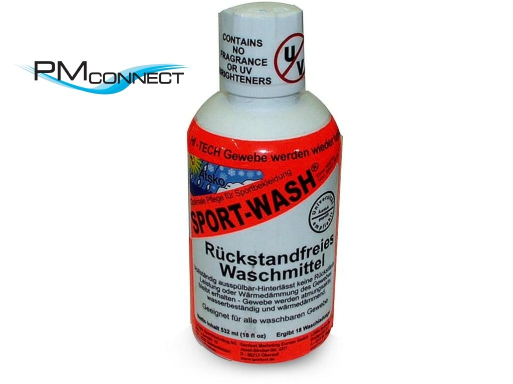 SPORT WASH je zcela vymáchatelný prací prostředek, na oděvech nezůstane nic, co by ucpalo póry tkaniny. Přípravek účinně ničí pachy, neobsahuje aviváže, bělidla, zjasňovače, enzymy, fosfáty nebo vůni. Obnovuje prodyšnost hi-tech funkčních tkanin. Vyprání tkanin s DWR úpravou (vodoodpudivou) obnovuje její funkčnost potlačenou znečištěním. Časté praní sportovního prádla v přípravku Sport-Wash® nezkracuje, naopak prodlužuje jeho životnost.