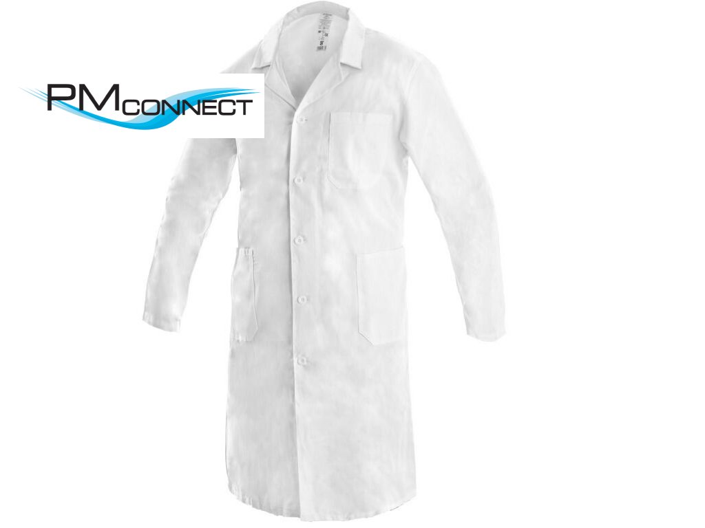 Pánský plášť s dlouhým rukávem, 3 přední kapsy, vzadu pásek s knoflíkem na stáhnutí. Doporučené použití: soukromé ordinace, kliniky a velká zdravotnická zařízení, záchranné a zdravotní dopravní služby, lázeňská zařízení, ústavy sociální péče, lékárny, školy se zdravotnickým a gastro zaměřením.Doplňkové parametry