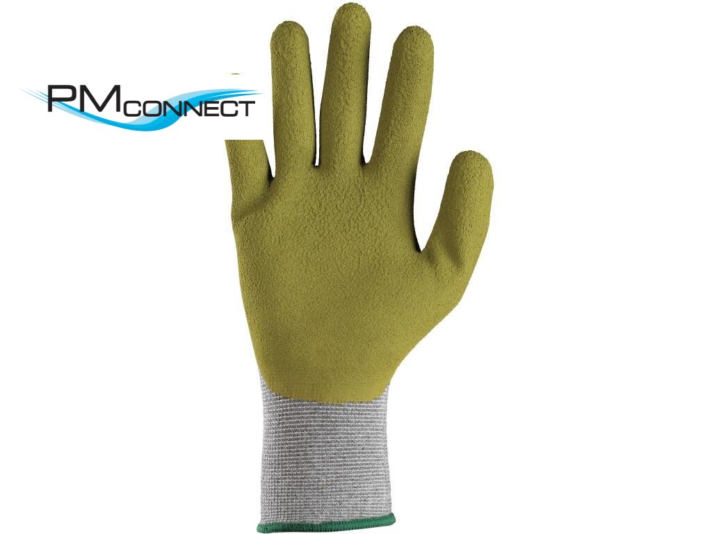Pletené bezešvé rukavice vyrobené z recyklovaných materiálů, které dávají nový život plastovým lahvím. Pro výrobu jednoho kusu rukavice bylo využito 0,65 kusů PET lahví. Rukavice jsou povrstveny v oblasti dlaně a prstů pěnovým latexem pro pevnější úchop. Poskytují ochranu před kontaktním teplem do 100 °C. Pružná manžeta se přizpůsobí zápěstí. Veškeré obaly produktu jsou zvoleny tak, aby způsobily co nejmenší dopad na životní prostředí. Doporučené aplikace: manipulace se zbožím, práce s horkými předměty do 100 °C, pomocné práce ve stavebnictví, logistika, lehký průmysl, skladová manipulace, zemědělství, zahrada, hobby.