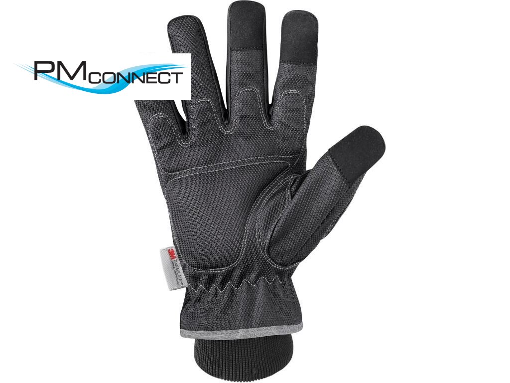 Zimní pracovní rukavice z kombinovaných materiálů. Poskytují výbornou tepelnou izolaci díky 3M Thinsulate vložce a fleece podšívce. Měkký úchop zajišťuje výstelka v dlani. Na palci, ukazováčku a prostředníčku je materiál umožňující práci s dotykovými dospleji. Prodloužená úpletová manžeta s gumičkou v zápěstí. Reflexní doplňky zvyšují bezpečnost v prostředí se zhoršenou viditelností. Rukavice jsou baleny s blistrem. Doporučené použití: práce v suchém a chladném prostředí, stavebnictví, logistika, zemědělství.