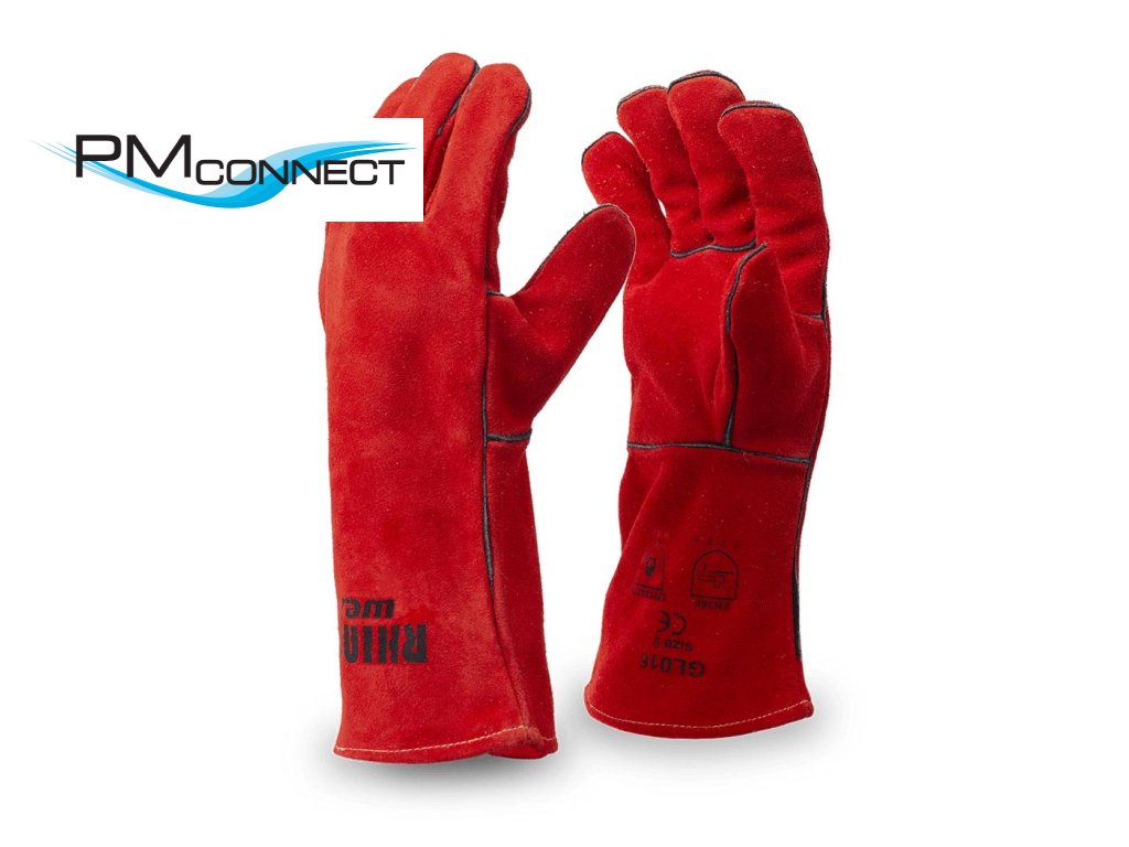 Kvalitní červené svářečské rukavice z hovězinové štípenky, s pohyblivým palcem a plně olemovanými prsty. Podšívka žerzej na dlani, bavlněná podšívka manžety. Kompletně šité kevlarovou nití.