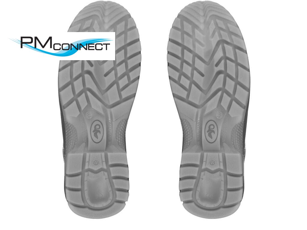 Bezpečnostní polobotka, perforovaná, s ocelovou špicí. Materiál: svršek z 1,4 - 1,6 mm kvalitní broušené kůže kombinovaný s prodyšnou tkaninou Cambridge, PU reflexní doplňky, prodyšná oděru odolná mesh podšívka, podešev: PU-TPU, protiskluzová, antistatická, olejivzdorná.Doplňkové parametry