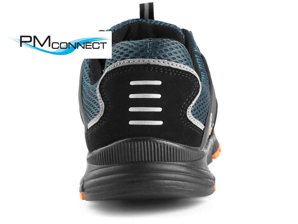 Bezpečnostní polobotka s ocelovou špicí, reflexní doplňky. Materiál: svršek z 1,4 - 1,6 mm hovězí broušené kůže kombinovaný s prodyšnou tkaninou, podšívka z prodyšné oděru odolné textilie, podešev: gumová, olejivzdorná, antistatická, protiskluzová.Doplňkové parametry