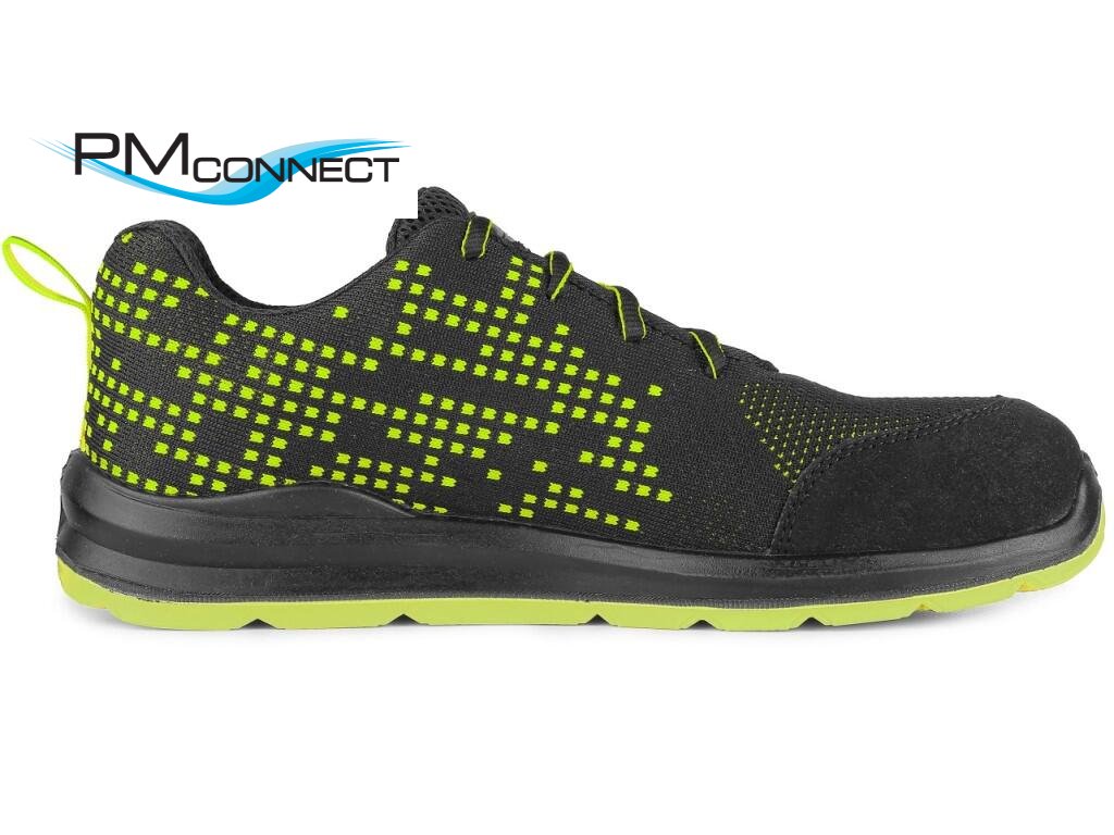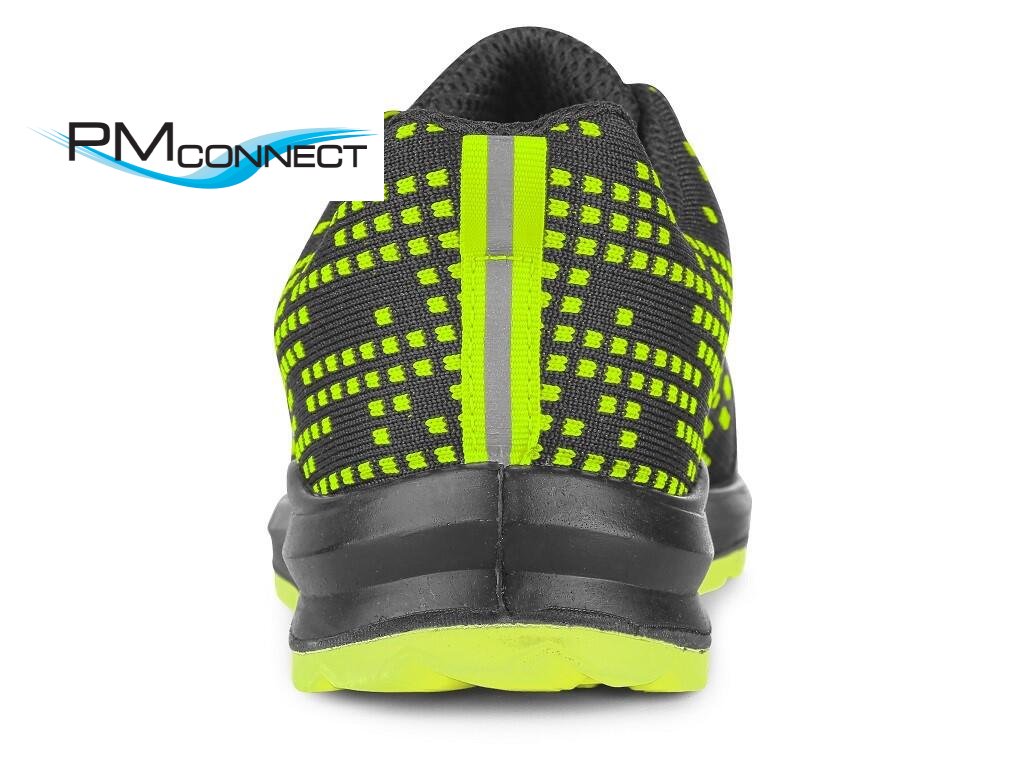 Textilní polobotka s reflexními doplňky. Materiál: svršek z odolného 1,8 - 2,0 mm polyesteru pratelného do 30 °C, přední část zesílena mikrovláknem, 3-vrstvá prodyšná textilní podšívka, PU-PU, podešev: PU-PU, protiskluzová, olejivzdorná, antistatická.