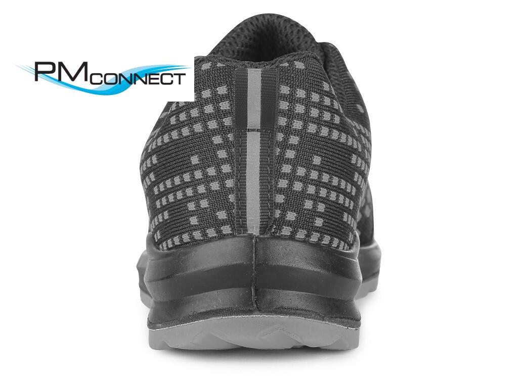 Textilní polobotka s ocelovou špicí a reflexními doplňky. Materiál: svršek z odolného 1,8 - 2,0 mm polyesteru pratelného do 30 °C, přední část zesílena mikrovláknem, 3-vrstvá prodyšná textilní podšívka, PU-PU, protiskluzová, olejivzdorná, antistatická podešev.Doplňkové parametry
