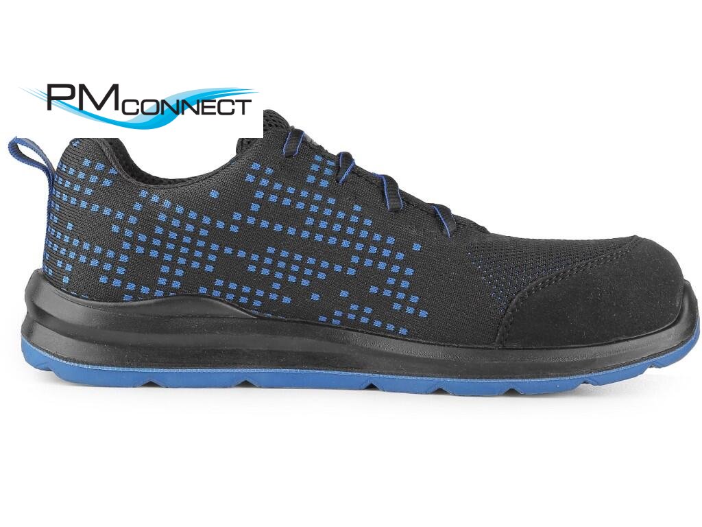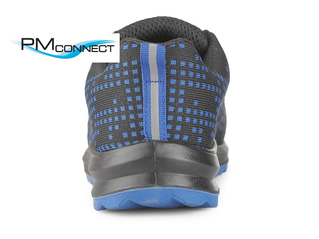 Textilní polobotka s reflexními doplňky. Materiál: svršek z odolného 1,8 - 2,0 mm polyesteru pratelného do 30 °C, přední část zesílena mikrovláknem, 3-vrstvá prodyšná textilní podšívka, PU-PU, podešev: PU-PU, protiskluzová, olejivzdorná, antistatická.