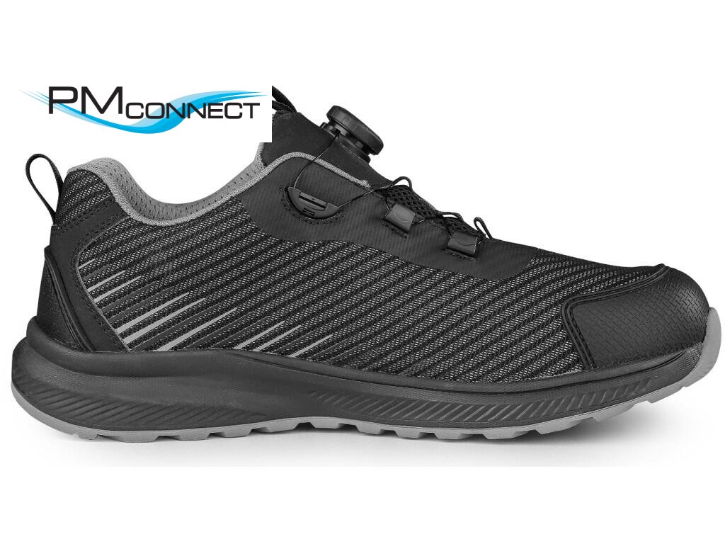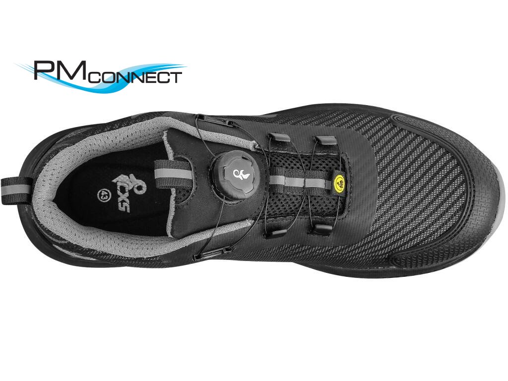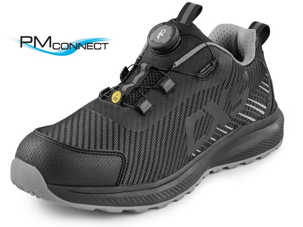 Bezpečnostní ESD polobotka s prodyšným svrškem, kompozitní špicí a textilní antipenetrační stélkou, reflexní doplňky. Speciální utahovací systém umožňuje rychlé stažení i uvolnění obuvi. Materiál: perforovaný textilní svršek z polyesteru, vnější ochrana okopu ze strukturovaného TPU, textilní podšívka, pohodlná anatomická vložka, podešev: EVA/guma, protiskluzová, olejivzdorná, antistatická, odolná proti propichu a kontaktnímu teplu do 300 °C. Vhodné pro práci v interiéru a suchých provozech.