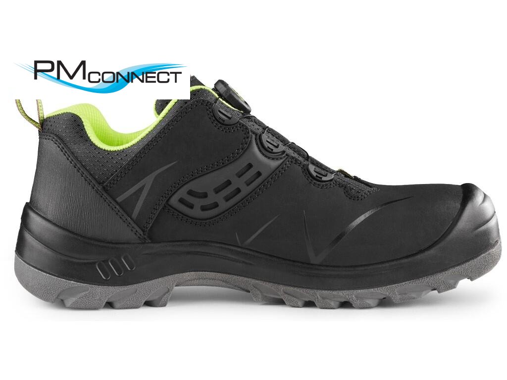 >Bezpečnostní kožená polobotka s plastovou špicí a planžetou Dyna-Flex®, reflexní doplňky. Speciální utahovací systém umožňuje rychlé stažení i uvolnění obuvi. Materiál: svršek z 1,6 - 1,8 mm štípenkové nubukové kůže (z jednoho dílu), vnější PU ochrana okopu a TPU ochrana paty, podšívka z prodyšné oděru odolné textilie, podešev: PU-PU, olejivzdorná, antistatická, protiskluzová a odolná proti propichu.Doplňkové parametry