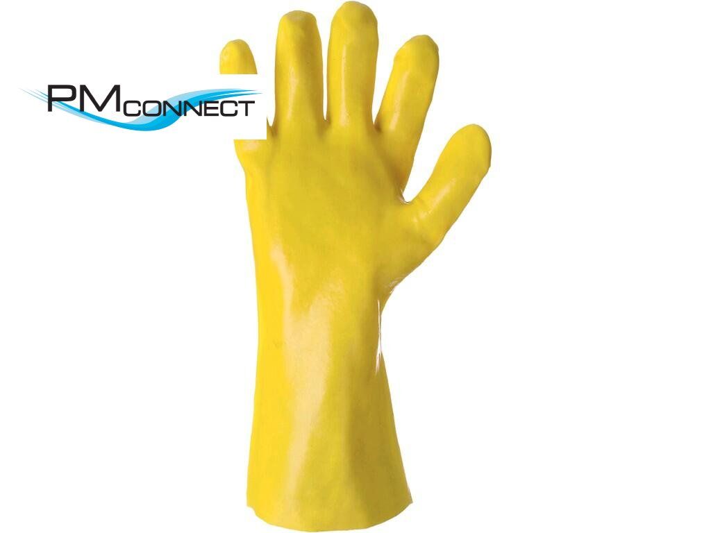 Kyselinovzdorné rukavice máčené v PVC. Odolné vůči látkám jako je metanol, kyselina sírová, hydroxid sodný - viz technická dokumentace. Doporučené aplikace: práce s kyselinami a louhy, laboratoře, chemický průmysl, kosmetický a farmaceutický průmysl.Doplňkové parametry