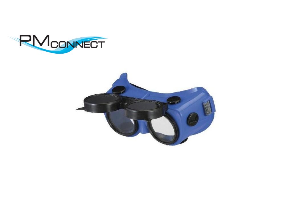 Uzavřené, nepřímá ventilace, očnice s čirými zorníky, sklopný rám se svářečskými filtry. Vhodné na pájení, svařování, řezání kovů plamenem.