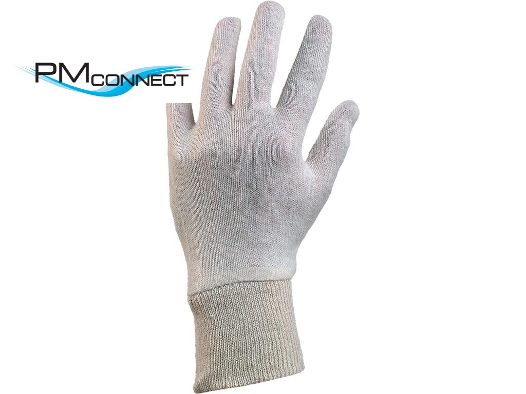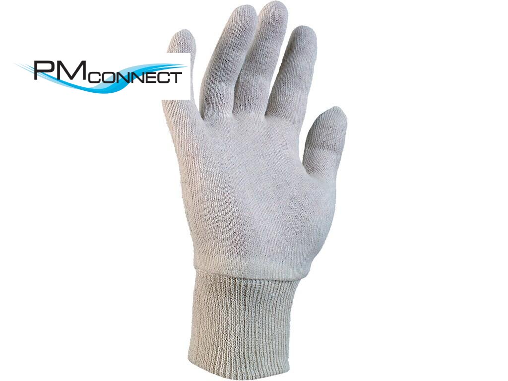 Textilní šité rukavice ze směsového režného úpletu s našitou pružnou úpletovou manžetou. Doporučené aplikace: skladování, manipulace s lehkým a drobným materiálem, vložka do jiných rukavic, lehká montáž.Doplňkové parametry