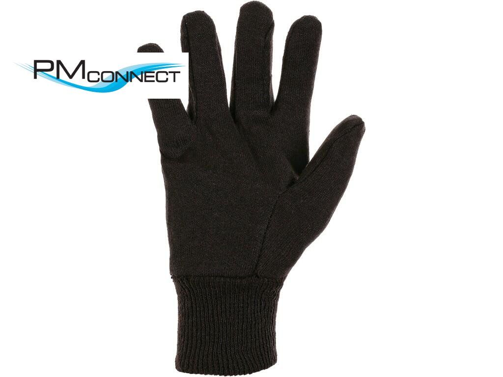 Textilní šité rukavice ze směsové teplákoviny s našitou pružnou úpletovou manžetou, tmavě hnědé. Doporučené aplikace: skladování, manipulace s lehkým a drobným materiálem, hobby, vložka do jiných rukavic, lehká montáž.Doplňkové parametry